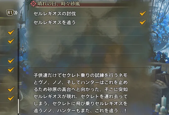 HR31以上でクナファ村にいるネブに話しかけると、エクストラミッション3「晴れの日、時々砂嵐」が開放されます。