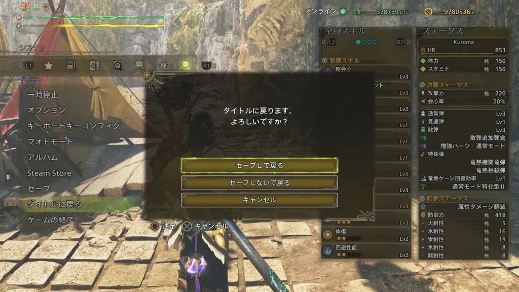 解決方法はシンプルです。タイトル画面に戻りましょう。その際セーブの有無は関係ありません。
