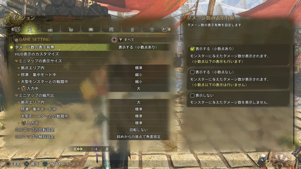 ワイルズのオプションにはダメージ表記を大小できる設定はありません。