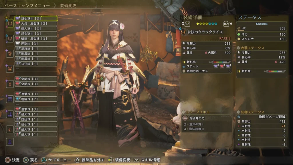 | 護石 | 超心珠【1】、耐火珠【1】、耐火珠【1】 |