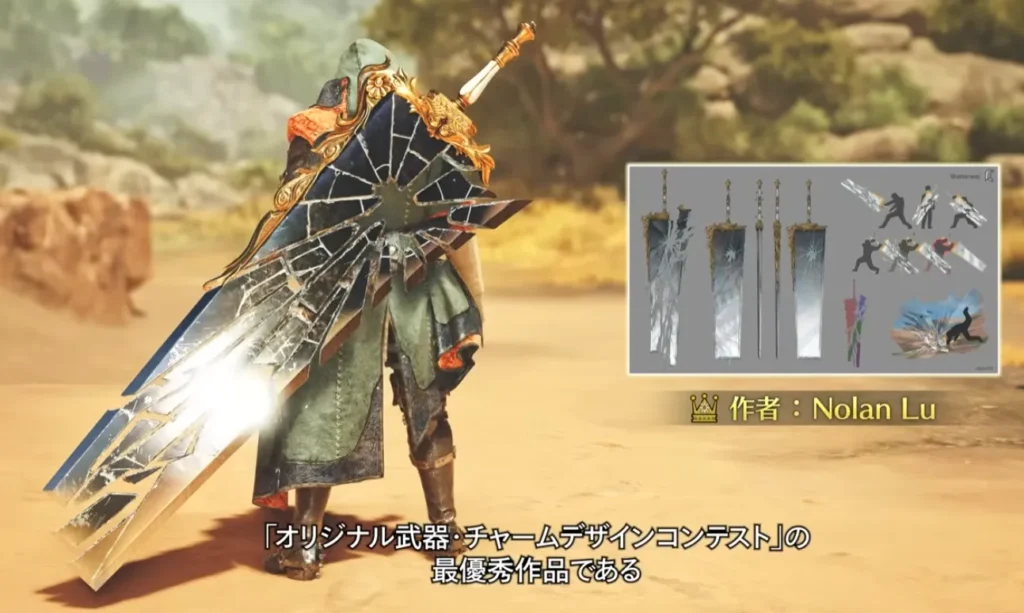 デザインコンテストの最優秀作品である大剣とチャームが実装されます。