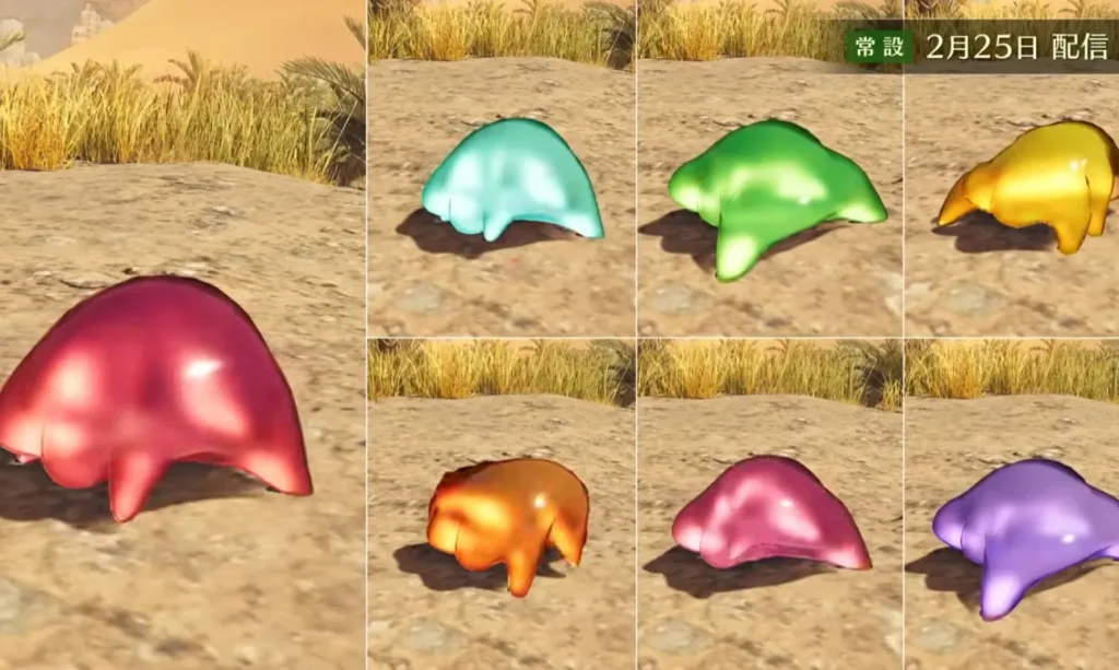 このプルプルした謎のモンスター(蜘蛛恐怖症対策モードで見た目が変わる小型モンスターに似ている)からはプルプルのチャームが入手できたりします。