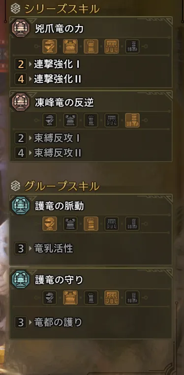 護兇爪竜装備4部位で発動するシリーズスキルです。